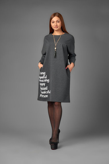 Фото товара 18190, серое свободное платье